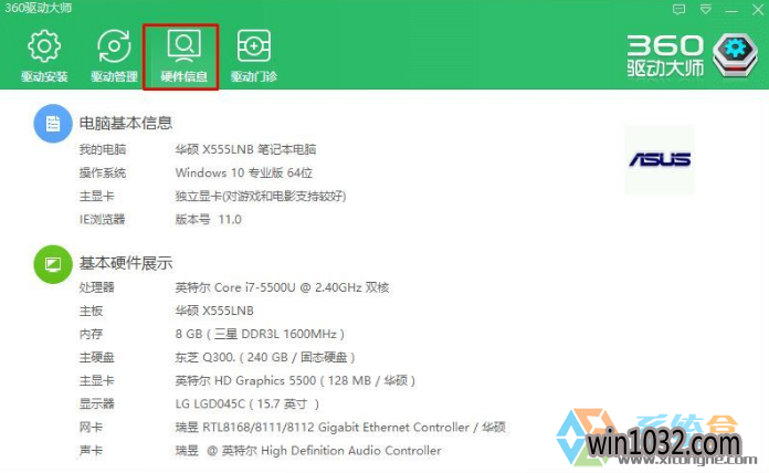 软件查看是一个非常方便又高效的电脑系统配置查看方法。用户只需要下载360驱动大师、驱动精灵、鲁大师等硬件检测软件就可以智能获知自己的电脑系统配置信息。比如,如果用户下载的是360驱动大师,用户可以直接打开这个软件点击【硬件信息】就可以看到所有信息了。