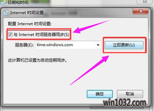 在“Ineternet 时间 设置”对话框中,需啊哟勾选与Internet 时间服务器同步,然后点“立即更新”,等时间更新的正确时间点确认。