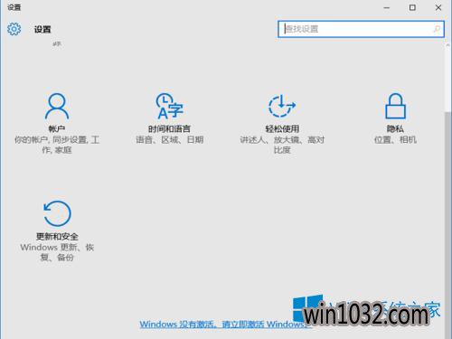 2、进入设置后,下拉菜单以便选中最后一个按键《更新与安全》,可参考下图的菜单位置。