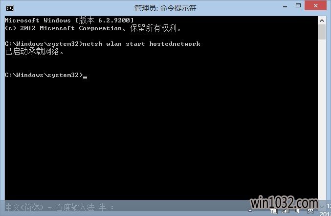 4. 开启没有线网络:继续在命令提示符中运行:netsh wlan start hostednetwork