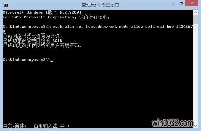 netsh wlan set hostednetwork mode=allow ssid=cai key=12345678