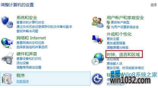 1、首先点击控制面板,打开时钟、语言和区域选项。