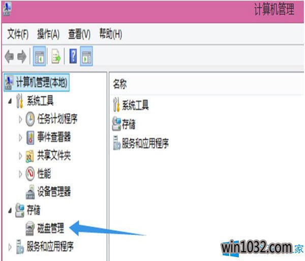 2、接下来就会进入到计算机管理面板,“磁盘管理”双击它点击进入。