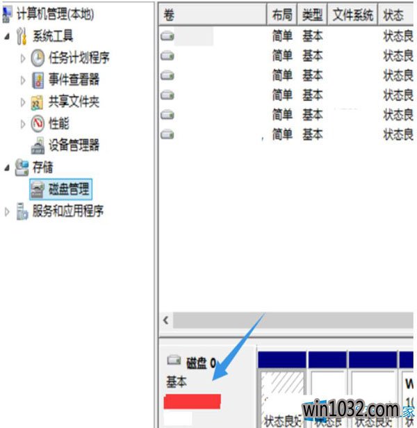 好了这样你会看到你电脑中硬盘的空间大小了,如果有多个硬盘大家在此可以看到硬盘0,硬盘1这种符号了,在此便可准确的查看硬盘空间了。