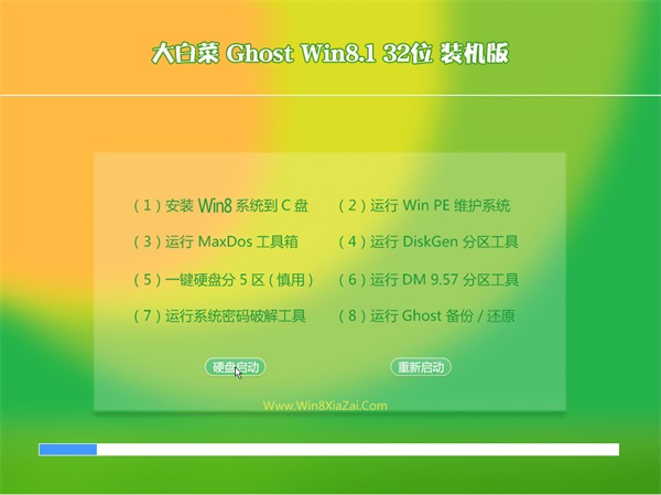 大白菜Win8.1 新机装机版 2021(32位)科学的预订分区设置关闭管理默认共享和关闭远程注册表服务,集成E驱动包,兼容更全面,强力清除某些PE安装本系统释放的恶意程序,保证系统干净,GHO方式封装,多种安装方式供用户选择,安装再简单不过了,系统安装全过程约6分钟,部分机子可达5分钟,高效的装机过程,未经数字签名的驱动可以免去人工确认,使这些驱动在进桌面之前就能自动安装好,系统安装完成就可以投入使用,只包含一些常用软件,严格检测无毒,系统稳定、快速,是可以长期使用的系统。