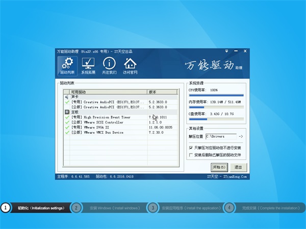 3、集成了自2018年流行的各种硬件驱动,首次进入系统即全部硬件已安装完毕。