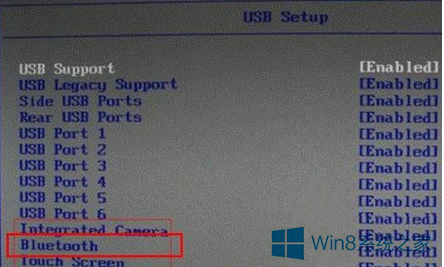 也有大概是你的电脑bios中把蓝牙关掉了,部分电脑中bios可以对蓝牙进行开关,关机进入bios中,看看Devices选项中USB Setup是不有Bluetooth选项,将此选项状态为Enabled便可。