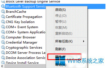 1、首先运行窗口中写入“services.msc”点击服务设置,在服务设置窗口中,找到“Bluetooth Support Service”服务,在蓝牙服务上打开鼠标右键,点击“属性”;