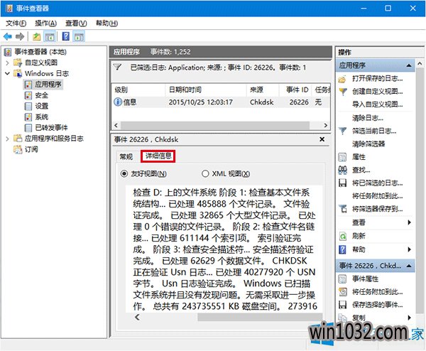 上面就是win10查看磁盘检测详细结果的办法详解了,检测结果都存放在系统日志中,从事件查看器搜寻便可看到。