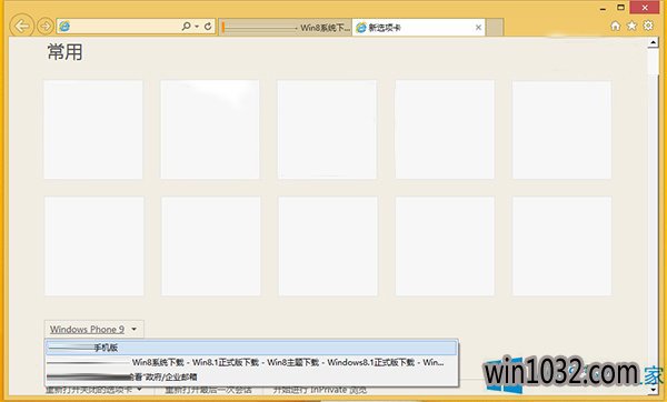 4、稍等片刻后,点击桌面端的IE11浏览器,新建网页标签页后,这时,大家看到一个知道wP9设备,或者是“iPhone、安卓设备”;