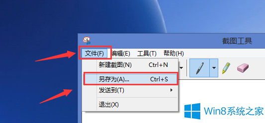 4、截图完成后,在截图工具的左上角依次打开“文件”→“另存为”,然后选中一个想要用来存放截图的文件夹,打开确定就可以了。