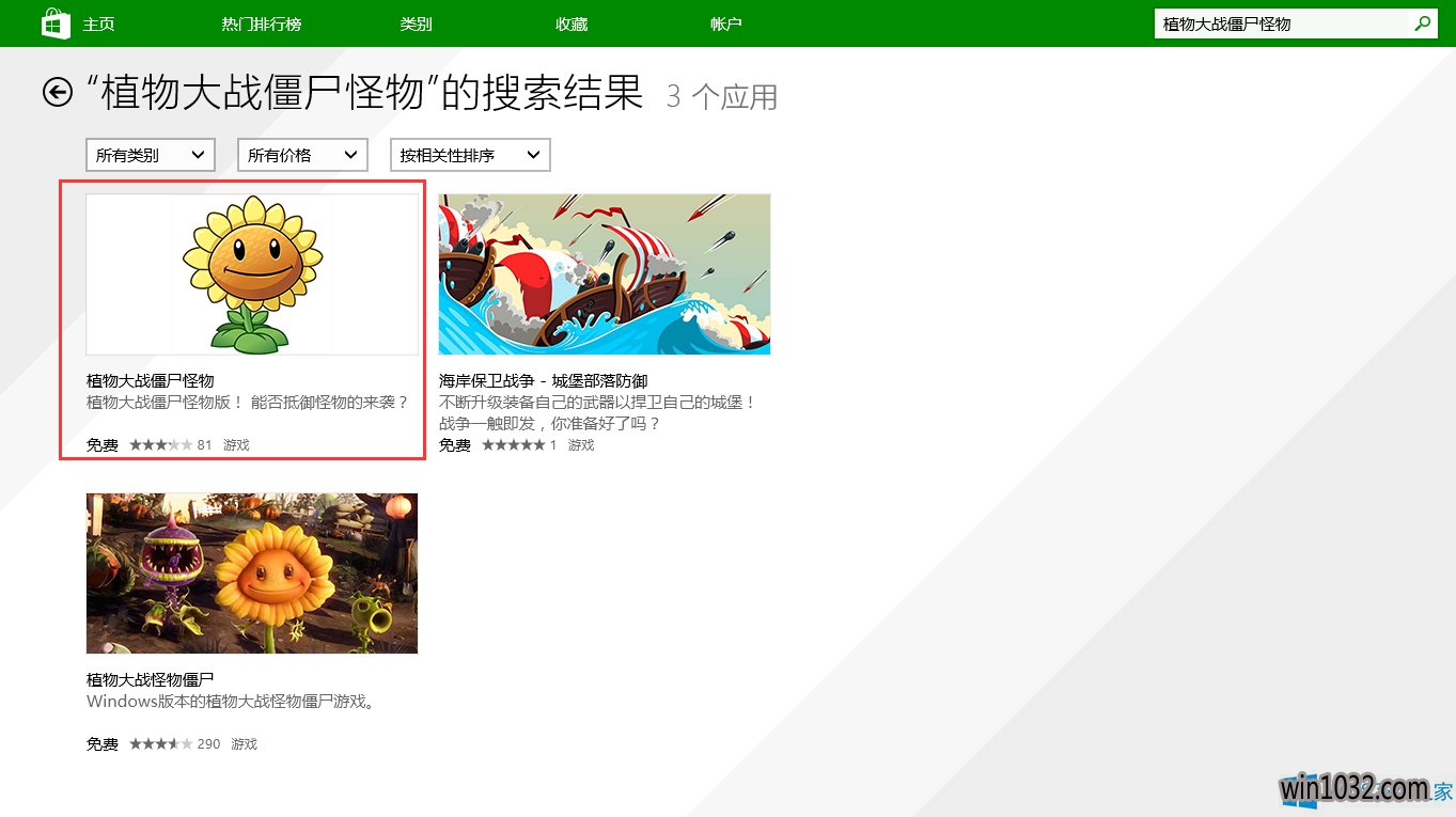 以上就是win10安装植物大战僵尸怪物的办法了,办法很简单,大家只需要点击win10应用商店,以后搜索植物大战僵尸怪物,最后在搜索出来的结果中打开进去安装便可。