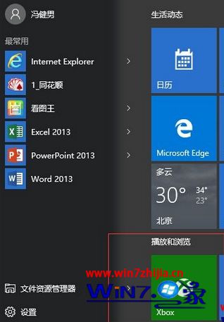 1、首先打开win10系统的开始菜单,找到xbox应用;