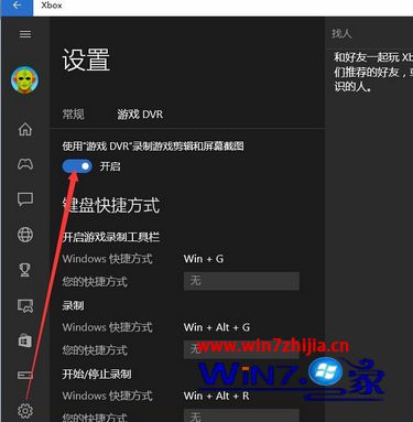 2、打开xbox应用后,在设置里将录制功能关闭;
