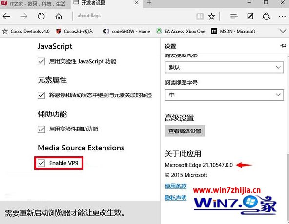 微软一直在加快win10预览版新版的发布,许多人对新版win10系统很是关注,我们都熟悉win10系统中内置有edge浏览器,而微软Edge浏览器开发团队曾经表示,将在新版win10预览版中加入对谷歌Vp9视频流播放的支持。现在该功能随着windows10预览版10547的发布如约而至,网友可在Edge浏览器“开发者设置”页面中找到该功能设置项。