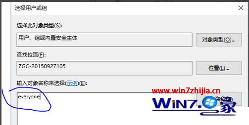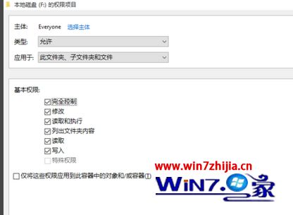 2、右键打开F盘,打开属性--安全--高级---打开添加--在对象名称里面写入everyone---打开确定;