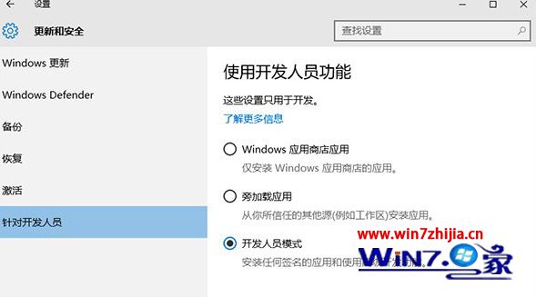 1、首先将win10系统升级到最新的Build 14316,然后到系统设置——更新和安全——针对开发人员——选中开发者模式;