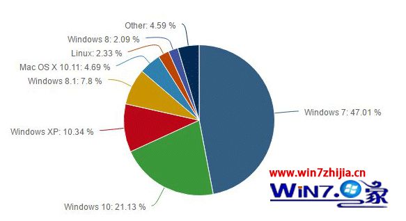 除了win10之外,尽管windows7仍然以47.01%的占有率居于首位,但这也是该机构统计结果中win7占有率首次跌破50%。另外,操作系统“常青树”windows xp系统仍然占据10.34%的市场份额,位居第三。