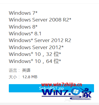 5、将zip文件解压到桌面,运行setupRsT.exe进行安装。注:如果提示“版本不支持,无法安装”,说明你选中的版本不对,请返回第三步换一个驱动版本,安装以后依据提示重启电脑;