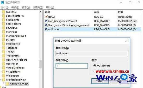 7、这样一来,再次按下Alt+Tab切换任务就直接显示桌面,而不会显示已打开窗口了。想要恢复默认,把wallpaper数值数据改为0,或者删除wallpaper便可。