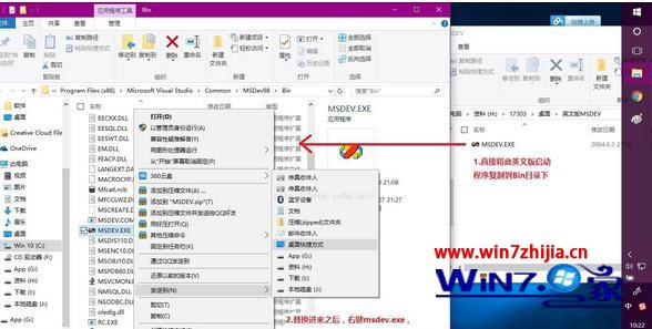 2、直接将英文版的msdev.exe复制到Bin目录下并且覆盖。有的同学大概是绿色版的VC++6.0,这种版本的vc大概为了兼容改了文件名,不叫msedv.exe,不用管,你将英文版复制进去以后,每次启动时启动复制进去的英文版就是的。你可以右键发送一个快捷方式到桌面。