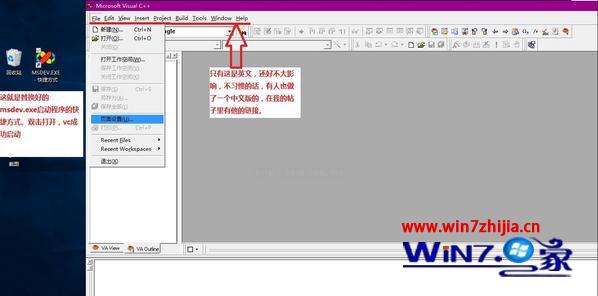 3、回到桌面打开刚才发送的快捷方式,便可成功启动VC++6.0。写个程序并且编译一下,看看有没问题。有问题可以参考下面的注意事项。