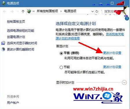 第三步、在电源选项窗口,打开当前电源计划后面的“更改计划设置”;