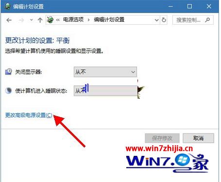 第四步、在编辑计划设置窗口,打开“更改高级电源设置”;
