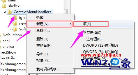 3、在ContextMenuHandlers展开项找到:new,左键点击:new,如果无new,右键ContextMenuHandlers--新建--项,命名为new;