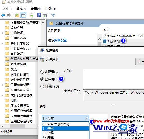 4、熟悉了原理,那么先在左上方设置为“已启用”,然后在下方的“选项”中把级别设置为 0 或 1 便可。而且在这里你可以看到选项 1 后面注明了(仅企业),这也是对前面说明的验证。最后“确定”便可。