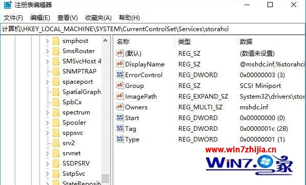 后来继续查找,发现win10系统需要将 HKEY_LoCAL_MACHinE system CurrentControlset services storschi 里面的startoverride 文件夹删除才可以