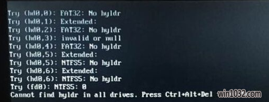 以上就是关于Win7开机提示cannot find hyldr in all drives---的解决手段介绍了,如果以上方法都不能解决,那么请重装系统吧。