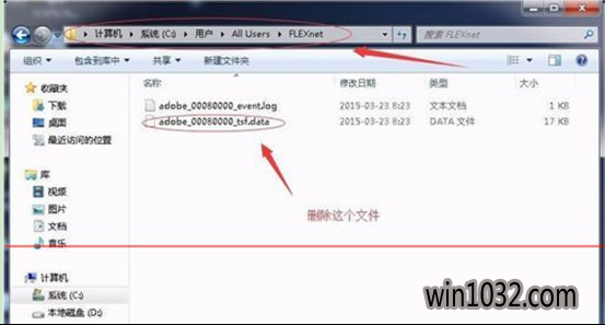 3、如果系统盘为C盘,那么将:c:/用户/All Users/Application Data/FLEXnet目录下的adobe_00080000_tsf.data文件删除掉;