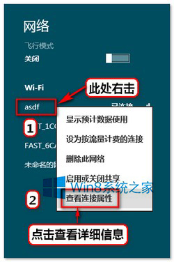 还有一种点击没有线属性的办法:打开右下角的没有线网络图片。在没有线网络列表里面已连接上的没有线信号右击选中查看没有线属性。如下图所示: