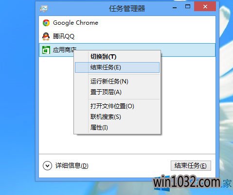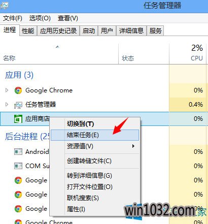 1.在任务管理器中找到那个应用程序,在上面打开鼠标右键,选中“结束任务”。