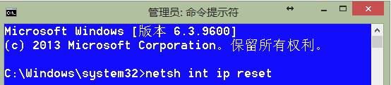 1、依然是在“命令提示符(管理员)”框中写入:netsh int ip reset 按下回车键。
