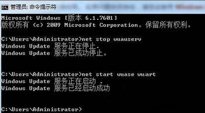 3、删除完成后在命令提示框中写入:net start wuauserv 按下回车键;