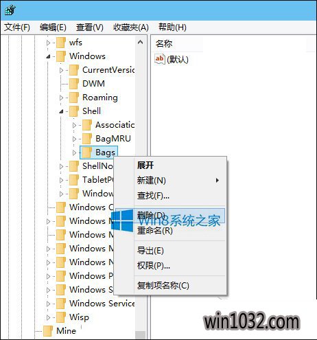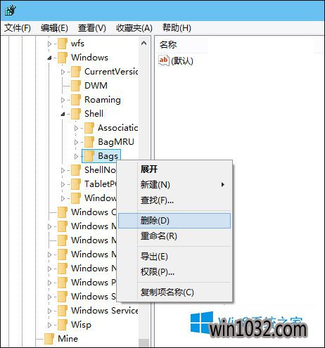 7、还是删除Bags项(如果存在),以后注销计算机重头登录。