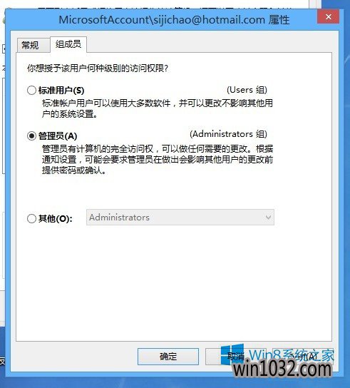 4、这样就能把一般的标准帐户升级为管理员帐户了,网友可以获取使用和设置的权限。同理,想解除管理员权限,也是通过这样的步骤来完成。