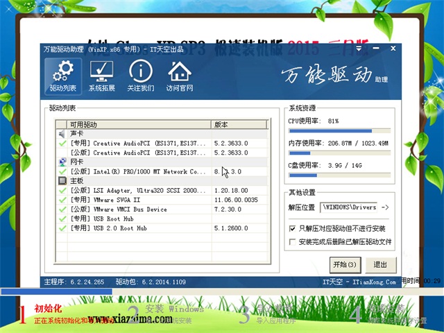 本系统以天空驱动包5.3.1为基础,解决声卡兼容性问题,完美解决笔记本安装在注册组件时假卡死现象,驱动识别率已达到99%,只要目标机器的硬件不超出驱动包的支持范围,都能全自动安装完毕而不会弹出搜索驱动对话框,体现了克隆系统的方便性及人性化。另外,驱动智能识别技术也大大减少驱动误装蓝屏几率。