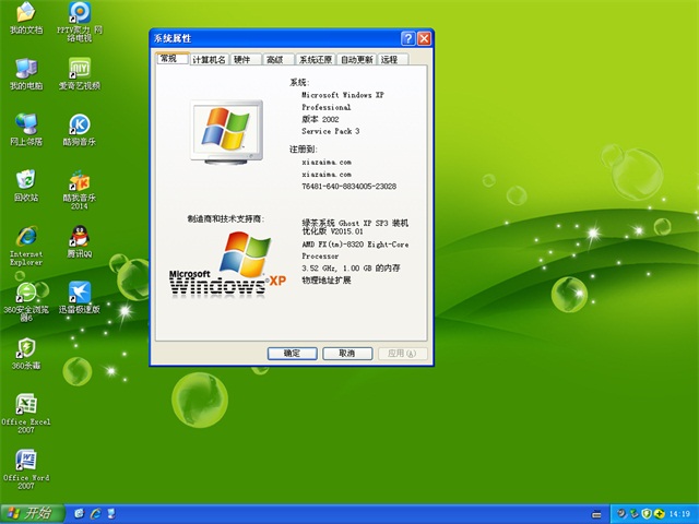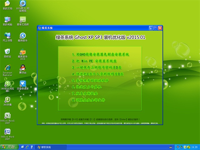 绿茶系统 Ghost XP SP3 装机优化版 V2015.01